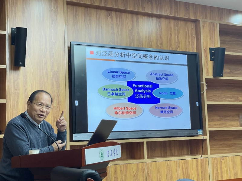 唐远炎教授首先以泛函分析中的一个比较晦涩的数学概念——“希尔伯特空间”为例,结合自身多年研究经验以及在学习和应用数学中的体会,从工程的角度给出了形象、通俗易懂的描述,让听众理解对数学理论的基本逻辑有所理解。唐教授还介绍了有关希尔伯特空间理论在模式识别中的应用实例,为工程技术人员更好学习和应用数学理论提供帮助。随后,唐教授用通俗易懂的语言介绍了小波分析和多分辨率分析在图像处理中的应用,并讲解了小波变换和音乐五线谱之间的联系,让听众对小波分析有了更深入形象的理解。报告尾声,唐远炎教授鼓励师生在科研的路上不怕困难,带着诚心去学习、去和其他领域的专业人员合作,取长补短,才能取得更好科研成果。