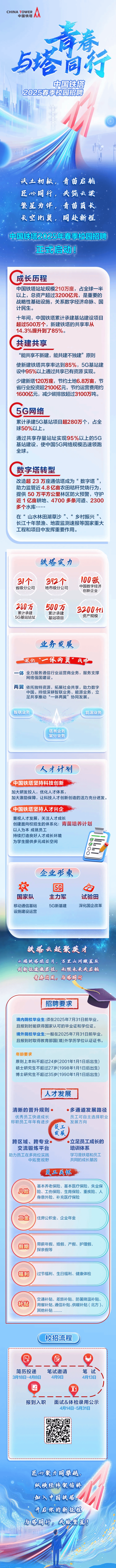 中国铁塔2025年春季校园招聘:4月8日截止网申,4月13日笔试!